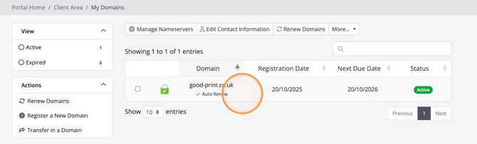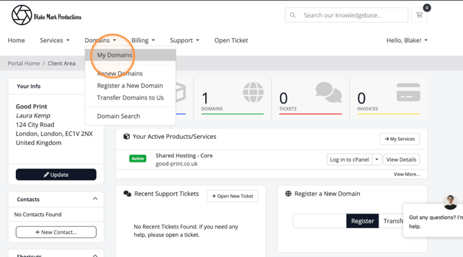 - Once logged in visit My Domains.